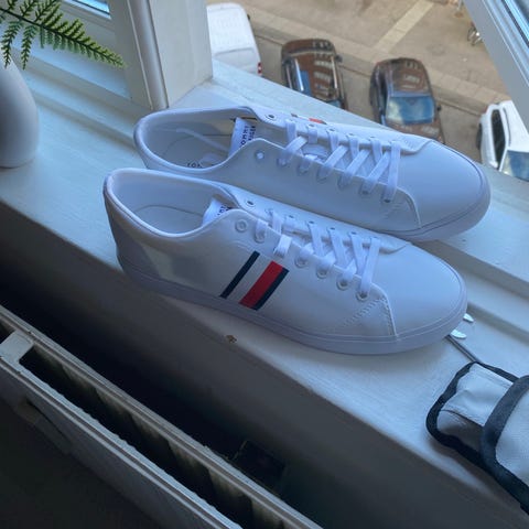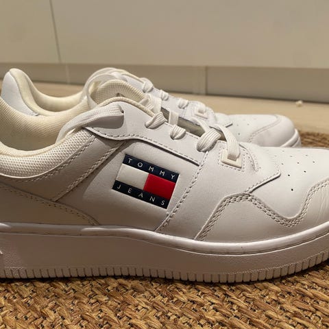 Tommy Hilfiger sneakers i hvid farve i størrelse 46. Er brugt én gang og var desværre for store. Klassiske lave sneakers med snørelukning og gummisål.