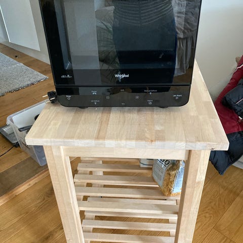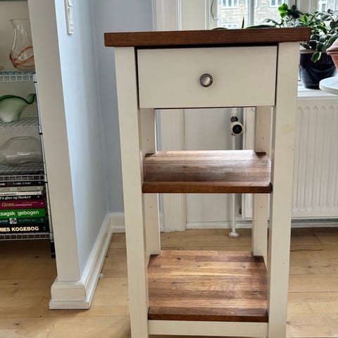 Lige som ny, står på hjul , fin køkken bord på toppen, kan bruges i alle rum