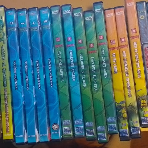 Hej jeg har hele serien af 1-8 Teenage Mutant Ninja Turtles Fast Forward dvd-boks med tegnefilm. Boksen indeholder flere dvd’er