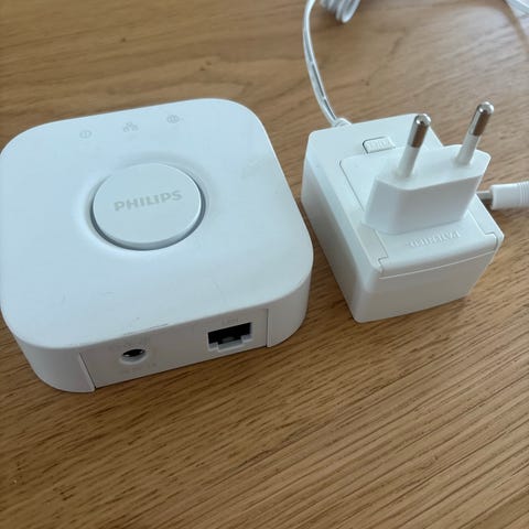 En Philips Hue hub som vi ikke længere bruger, men som ellers virker upåklageligt. Hvis du mangler et lille netværkskabel kan vi nok godt smide sådan et oveni.