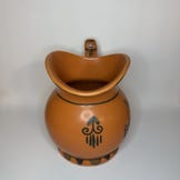 hvid keramik/porcelæn med sort, dekorativt mønster på korpus