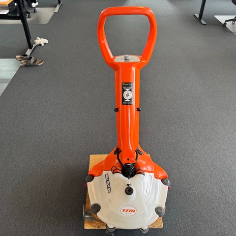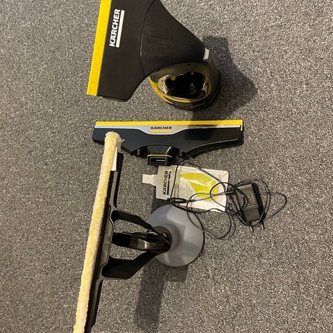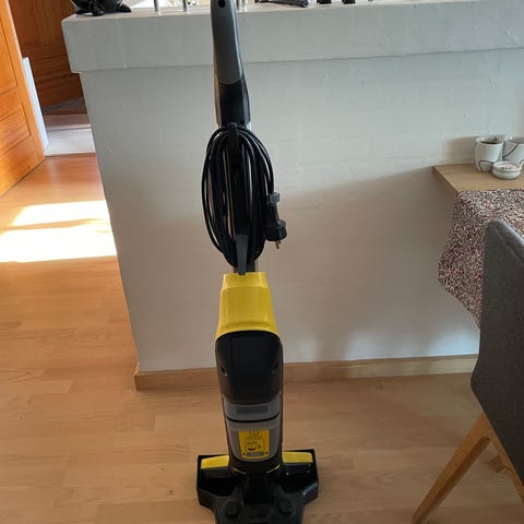 Sælger en batteridrevet gulvfejemaskine fra Kärcher i flot gul farve.