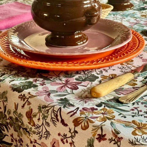 Dug med plads til 8/12 gæster, ikat-stil mønster på en naturlig bomuld- og linnedug i intense farver. Det er et meget holdbart stof, designet særligt til duge der kan maskinvaskes ofte uden at farven skades, nemt at kombinere med enhver service, ideel til glade borde med imponerende dekorative kombinationer.