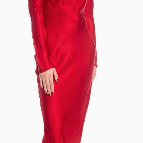 Fremstillet i et raffineret stof med froissé-effekt, har det en glansfuld og flydende tekstur, der fremhæver plaggets bevægelse. Den intense og klare farve gør den særligt scenografisk og sofistikeret.