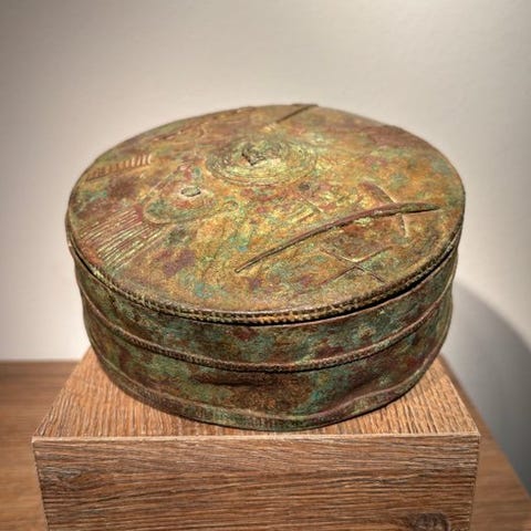 Bronze Cloisonné-boks forgyldt, Qing-dynastiet, Jiaqing-periode (det 19. århundrede), titel Boîte en Bronze Cloisonné Doré, oprindelse Kina, autentisk/original, god stand med indre emaljeflager, diameter 8,1 cm. Klik på den blå "gå til varen" knap, for at købe eller byde på denne vare. Den samlede pris vil blive vist inden du afgiver dit bud.