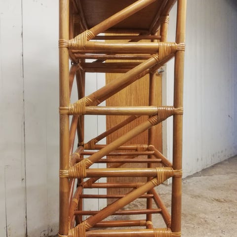 Vintage reol af bambus og rattan med fire hylder, fremstillet i Italien i 1960’erne, 160 cm høj, 63 cm bred og 35 cm dyb, i fremragende stand med kun let slid og aldersmærker. Klik på den blå "gå til varen" knap, for at købe eller byde på denne vare. Den samlede pris vil blive vist inden du afgiver dit bud.