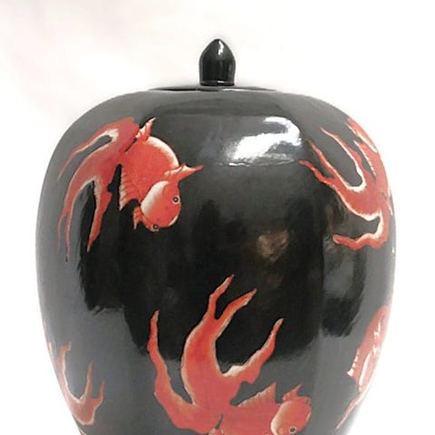 En stor lågkrukke af porcelæn fra Kina, håndmalet med emalje i rød på hvid glasur, 45 cm høj, 25 cm i diameter, dyb 25 cm, 5 kg, fra det 20. århundrede, antik stil. Klik på den blå "gå til varen" knap, for at købe eller byde på denne vare. Den samlede pris vil blive vist inden du afgiver dit bud.