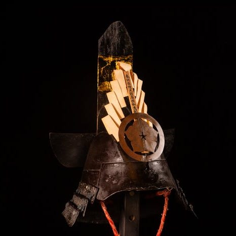 Rustning - Japan - Tetsu Sabinuri 16 Ken Suji Kabuto med Maetate af Samurai Y...