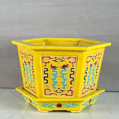 Originalt porcelæn penselpotte i Famille Verte fra Kina, tidligt i det 20. århundrede, med titlen Pot a Pinceaux - Bitong - Famille Verte - Marque Poeme - Dragon et Immortel, i god stand, provenance Frankrig, dimensioner 14,2 cm i højden og 10 cm i diameter. Klik på den blå "gå til varen" knap, for at købe eller byde på denne vare. Den samlede pris vil blive vist inden du afgiver dit bud.