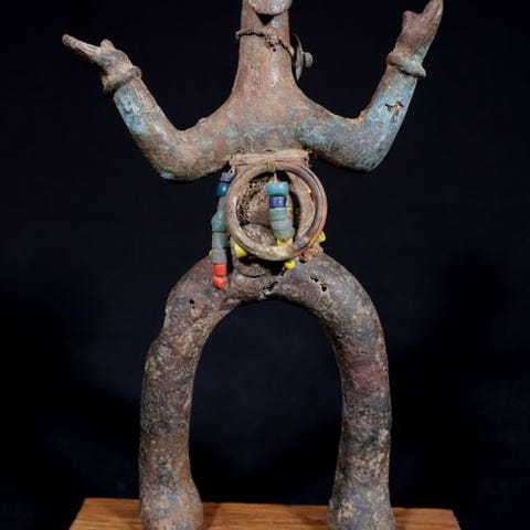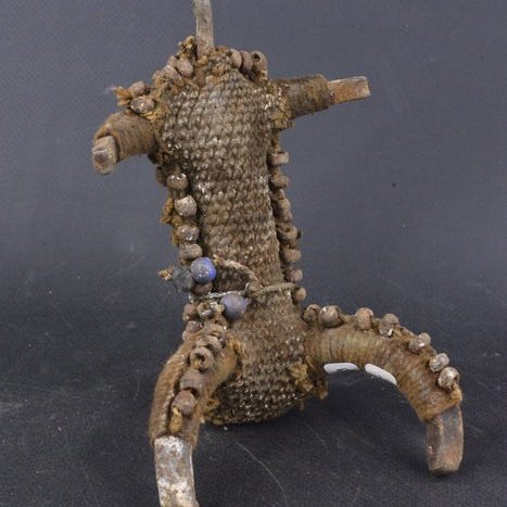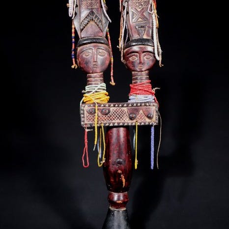 Namji træ- og perlekvindepuppe fra Cameroun, mål 47 × 17 × 9 cm, slutningen af det 20. århundrede, i god stand. Klik på den blå "gå til varen" knap, for at købe eller byde på denne vare. Den samlede pris vil blive vist inden du afgiver dit bud.