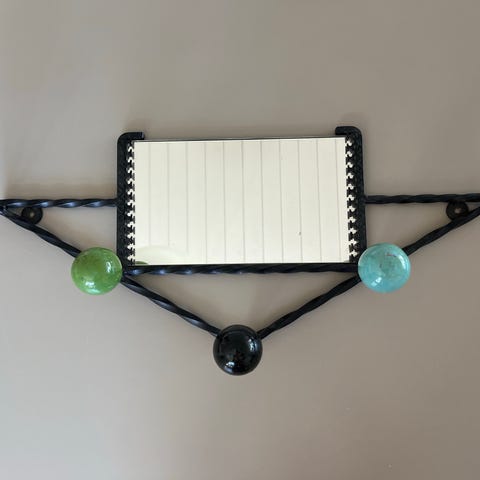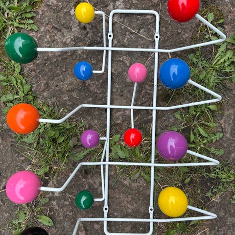 Denne kapstok er udført i hvidlakeret trådstål med otte store og seks små farvede bolde af ahorntræ og står i en meget smuk stand med næsten ingen brugsspor.
