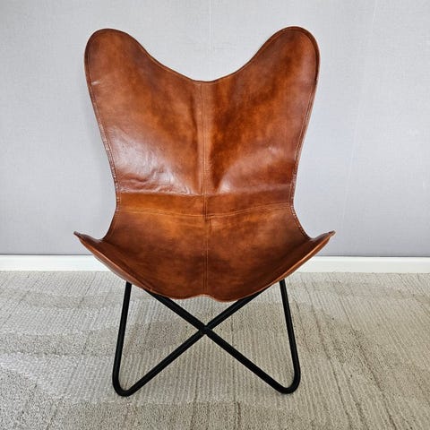 Armstol - Sommerfuglestol - Læder, Metal - Sommerfuglestol - sommerfugl