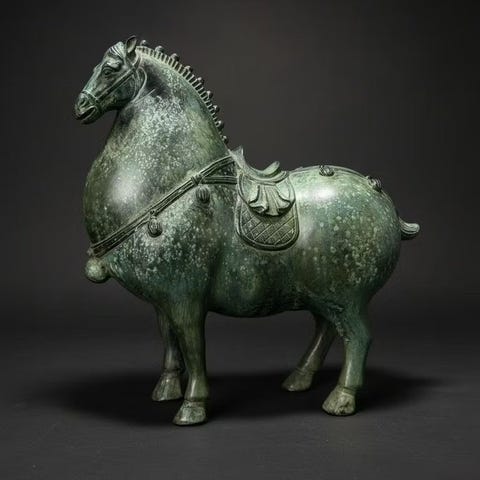 Motiv: En zebra afbildet i et hvilende øjeblik. Posturen er elegant, med en let buet hals og hovedet rettet mod observatøren, hvilket giver figuren en fornemmelse af vitalitet og opmærksomhed.