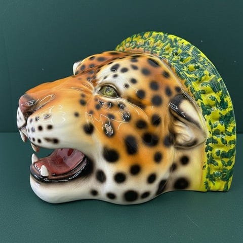 Detaljer: Øjnene er malet omhyggeligt, og viser en ravfarvet iris, som tilføjer realisme til værket. Ører og snude er formet med ynde.