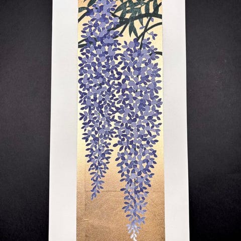Smukt håndlavet japansk Washi-papir med små træbarkstykker, som sædvanlig ved Akiyama-tryk.