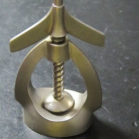 Bord-nødknækker signeret Christofle er fremstillet af metal belagt med sølv og skiller sig ud ved den centrale krop i en realistisk valnødform. Mekanismen med skrue, betjent af et øverste håndtag, gør det muligt at knuse skallerne med præcision inde i det konkave rum, alt sammen understøttet af en solid cirkulær base