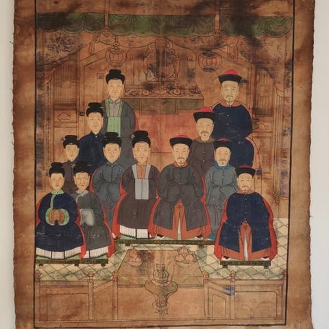 Dette er et håndknyttet kinesisk tæppe i en tidlig dekorativ stil (Art Deco), der viser en klassisk “Bogu Tu” (Antique Display) komposition, der symboliserer lang levetid, velstand og studenterlighed — rig i den traditionelle ånd af den kinesiske literati-kultur.