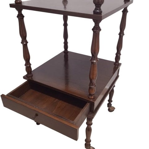 Viktoriansk Whatnot: Typisk fremstillet af frugttræ, mahogny eller rosentræ, og disse har ofte drejede støtter og en lille "galeri" eller et specialiseret øverste niveau til udstilling.