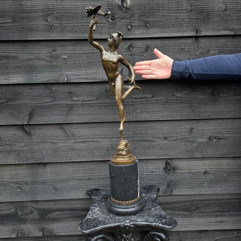 Statue, Groot bronzen beeld van Mars met Venus - 69 cm - bronze marmor