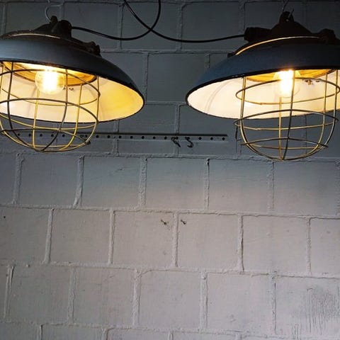 Industriel hængelampe. Diameter 43 cm. Højde 57 cm.