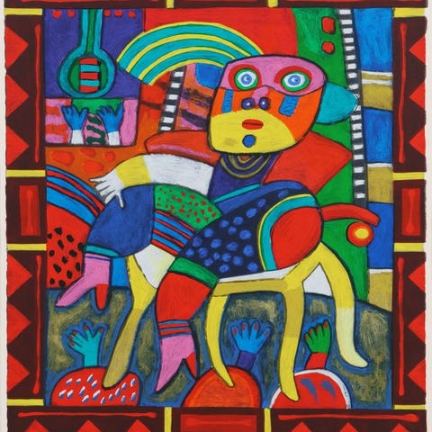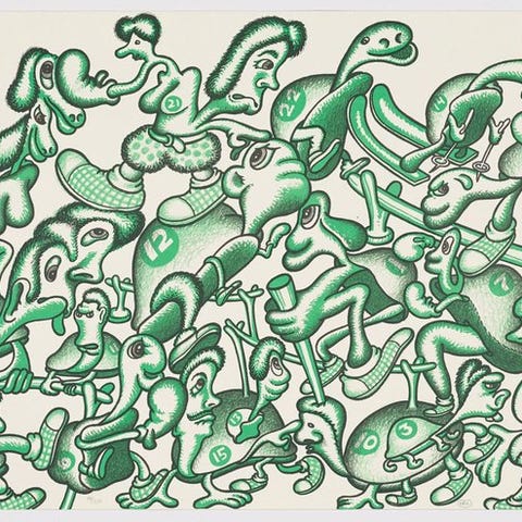 The Olympic Suite consists of 50 lithographs and silkscreen prints chosen to represent various contemporary artistic trends. It was published to commemorate the first centenary of the modern Olympic Games. The selected artists work in a wide variety of movements and styles, from the hyperrealism of Antonio López to the