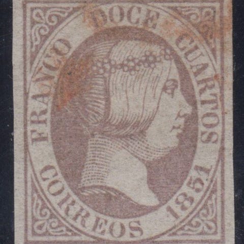 Oprindelse Spanien. Isabel II. 1 real, grøn, brugt frimærke fra 1865, Edifil 78, dateringsstempel Vich (Barcelona, 12-3-65). Klik på den blå "gå til varen" knap, for at købe eller byde på denne vare. Den samlede pris vil blive vist inden du afgiver dit bud.