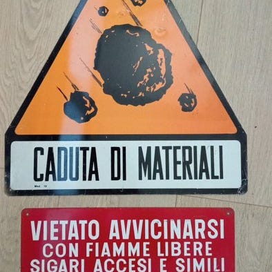 Vietato Fumare, et italiensk emaljeskilt i jern fra 1970–1980, 82,4 cm højt og 24,4 cm bredt, i god brugt stand med små aldersmærker og pletter, kvalificeret som Originale rinnovato. Klik på den blå "gå til varen" knap, for at købe eller byde på denne vare. Den samlede pris vil blive vist inden du afgiver dit bud.