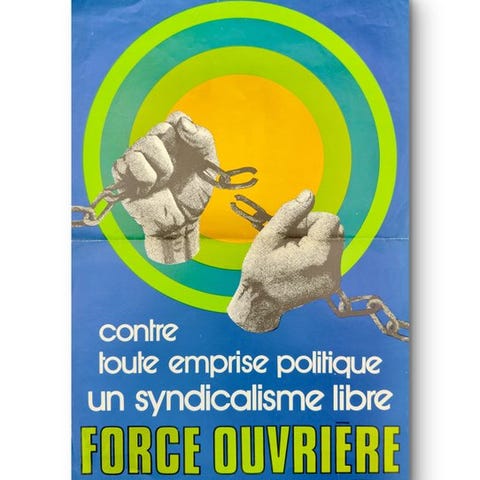 Ægte militærhistorisk stykke, dette skærmpladertryk indeholder et af de mest ikoniske slogans fra den sociale protest i Frankrig.