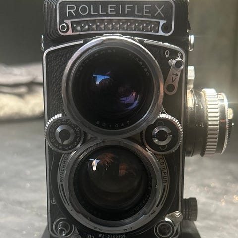 Rolleiflex 3.5A med Tessar 75mm f/3.5 er et klassisk spejlrefleks-mellemformatkamera med to objektiver (TLR) produceret af Rollei. Kendt for sin enestående byggekvalitet og pålidelighed, optager det skarpe 6×6 cm billeder på 120 film og er perfekt til portrætter, street og studie-fotografering.