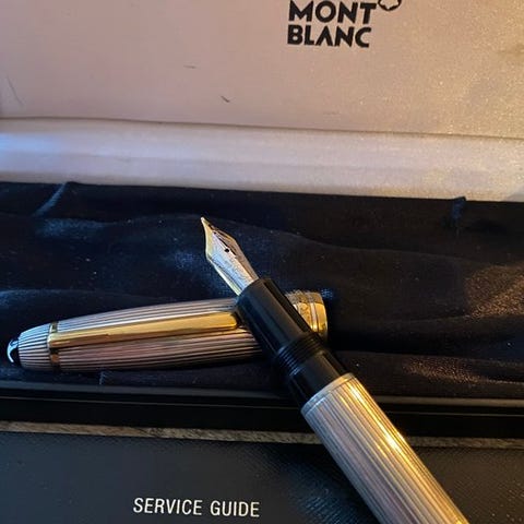 Waterman CF MOIRÉ ARGENTÉ pen eller kuglepen sæt, med en 18 karat guldfedern (750), fremstillet i Frankrig i slutningen af det 20. århundrede, i god stand med aldersrelaterede slidmærker, i funktion, inklusive en ny CF-rap. Klik på den blå "gå til varen" knap, for at købe eller byde på denne vare. Den samlede pris vil blive vist inden du afgiver dit bud.