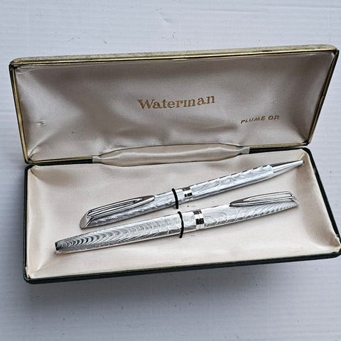 Vintage-fountain pen og kuglepen sæt i æske