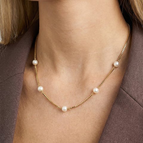 Akoya-perlekæde på 6,76 mm med lås i 18 karat guld
