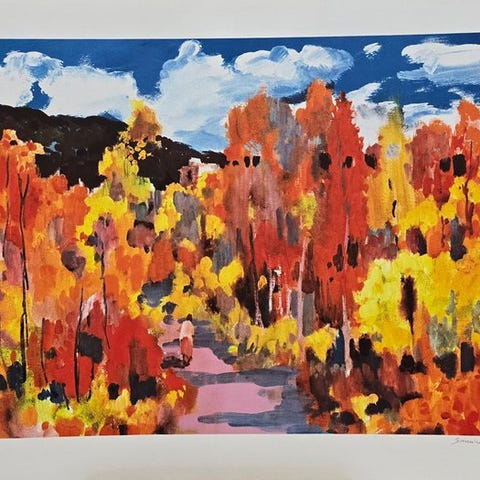 Pictura Galeria præsenterer denne magnifikte litografi tilhørende Ramon Sanvisens, som forestiller en landlig scene hvor to personer arbejder på en gylden mark, og spejler landbrugs livet og harmonien mellem mennesket og det naturlige landskab.