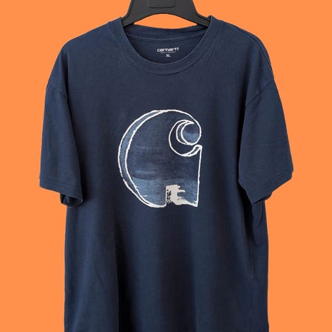 Trykt på en Waves T-shirt, den er i god stand, men har nogle revner på printet i de hvide NHL-trøjer og har nogle pletter på nakken og højre nederst på ærmet (se billeder)