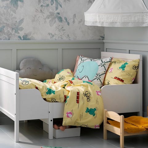 Sundvik stel til udtræksseng med lamelbund i hvid 80x200 cm (når den er trukket helt ud)