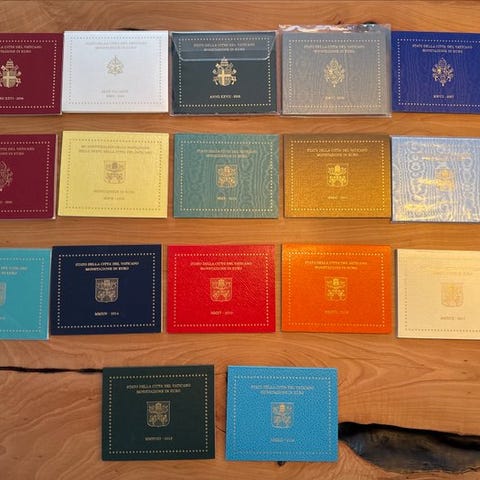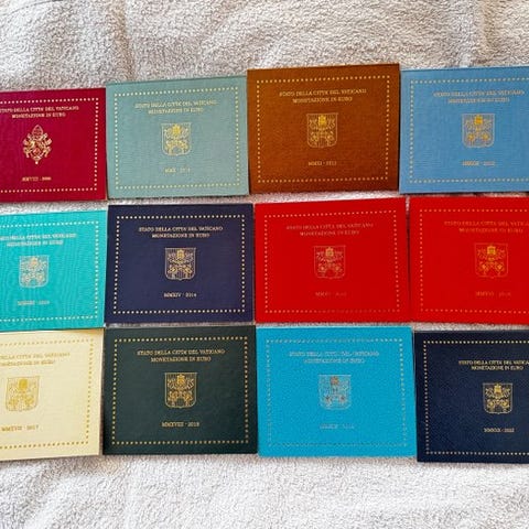 Sæt af 13 Vatikan-sæt indeholdende 2 € commemorative mønter i BU-kvalitet :