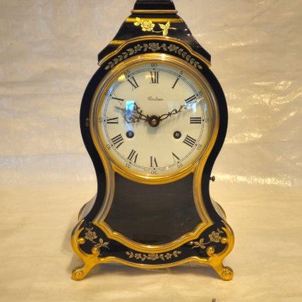 Giv bud på modellen 351-021SK fra firmaet Hermle & Sohn. Fuld slag ved hele timen og ved halv timen på fem tonstænger. Hermle er kendt for fremragende kvalitet. Værket fungerer; nøglen foreligger. Genstanden kan afhentes i Stade.400