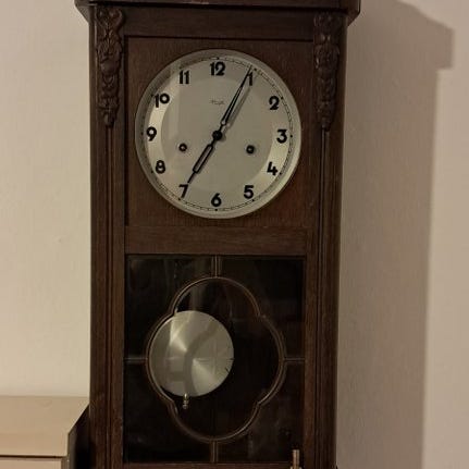 Hermle & Sohn model 351-021SK, tyskproduceret mekanisk pendulurm時計 fra 1990’erne i Messing og træ, højde 62 cm, bredde 28 cm, dybde 15 cm, vægt 6 kg, otte-dages kasseværk og slag på hele timen og halvanden time på fem klokkestrenge, nøgle medfølger, i fremragende stand og i funktionsklar stand. Klik på den blå "gå til varen" knap, for at købe eller byde på denne vare. Den samlede pris vil blive vist inden du afgiver dit bud.