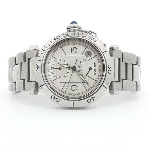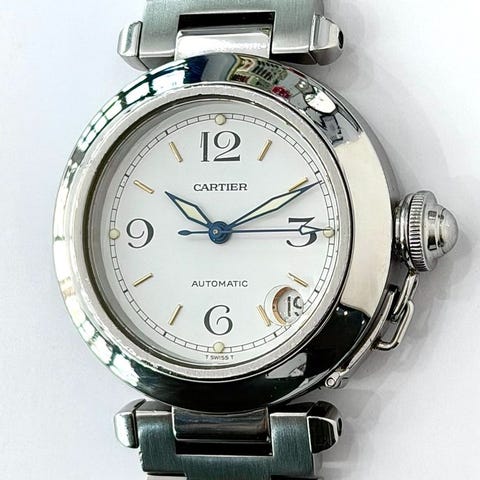 uret fremhæves af Cartier-signaturkronen, prydet med en blå cabochon, en ikonisk detalje der forstærker dets elegante og let genkendelige identitet ved første blik.
