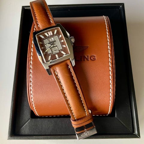 Breitling for Bentley 6.75, Ref. A44362, 2009, 48 mm automatisk kronograf i rustfrit stål kasse med brun skive og læderrem, ubrugt og inklusive originalboks, papirer og garanti. Klik på den blå "gå til varen" knap, for at købe eller byde på denne vare. Den samlede pris vil blive vist inden du afgiver dit bud.