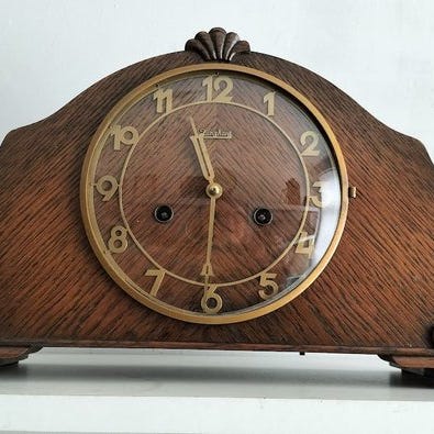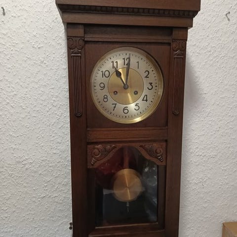 Art Deco Bauhaus vægur fra perioden 1925–1930, mekanisk urværk, konstruktion af egetræ-coromandel-træ-chrome-bras, målene 23 × 40 × 13 cm, vægt 2,5 kg, oprindelse Tyskland, i god brugt stand med få aldersrelaterede tegn, vindebøjen inklusive og forsendelse til europæiske lande, tre-tone bim-bam slag ved halv- og heltimer. Klik på den blå "gå til varen" knap, for at købe eller byde på denne vare. Den samlede pris vil blive vist inden du afgiver dit bud.