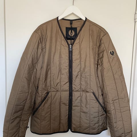 Belstaff 90th Anniversary jakke, 100% bomuld, grå, størrelse IT 48 til mænd, mål: skulder 45 cm, bryst 49 cm, ærme 64 cm, total længde 62 cm; i fremragende stand med meget let slid, lynlås lukning dækket af markerede trykknapper, forlommer med lynlås og to brystlommer med trykknapper (en med fejring label “90”), ærmelomme med lynlås, indre bomuldsvaskeskind krave, skuldre og albuer forstærket. Klik på den blå "gå til varen" knap, for at købe eller byde på denne vare. Den samlede pris vil blive vist inden du afgiver dit bud.