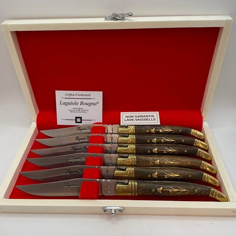 Sæt af 6 foldknive Laguiole Bougna med sin udstillingsstander