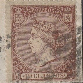 Spanien. Isabel II. 12 cuartos, lilla. Brugt, 1851, Edifil 7, med rød spindelmærke og ekspertsignatur. Klik på den blå "gå til varen" knap, for at købe eller byde på denne vare. Den samlede pris vil blive vist inden du afgiver dit bud.