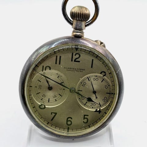 A. Lange & Söhne Kal. 48 Observationsur ud af sølv med håndoptræk, kassediameter over 50 mm (ca. 59 mm), vægt 166 g, stands meget god med mindre slid, i gang. Klik på den blå "gå til varen" knap, for at købe eller byde på denne vare. Den samlede pris vil blive vist inden du afgiver dit bud.