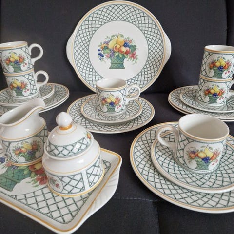 Villeroy & Boch – 6 morgenmad- og kagetallerkener „Geranium“ – håndmalet – 20. århundrede.