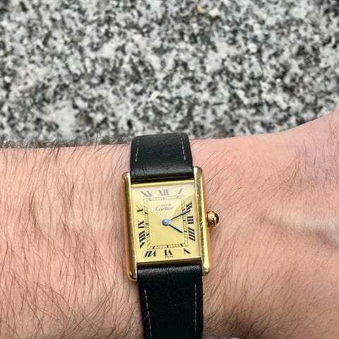 Cartier Tank Solo armbåndsur med rustfrit stål kasse (31 mm diameter), automatisk bevægelse, hvid tallskive med sorte romertal og blåstål swords, dato kl. 3, blå cabochon spinel kronen, armbånd af rustfrit stål med poleret og satin finish; reference 3515, meget god stand med let slid, afsendes forsikret. Klik på den blå "gå til varen" knap, for at købe eller byde på denne vare. Den samlede pris vil blive vist inden du afgiver dit bud.
