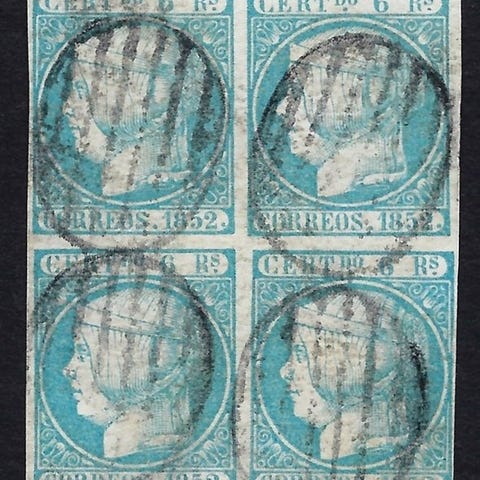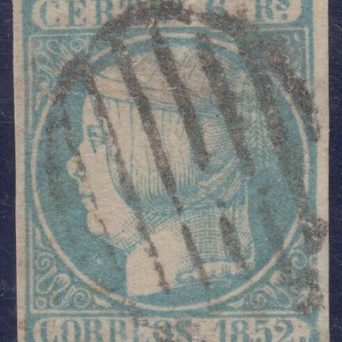 Spanien, Isabel II 6r Azul, aflyst, fra 1851, Edifil Nr. 10, med Brun-certifikat. Klik på den blå "gå til varen" knap, for at købe eller byde på denne vare. Den samlede pris vil blive vist inden du afgiver dit bud.