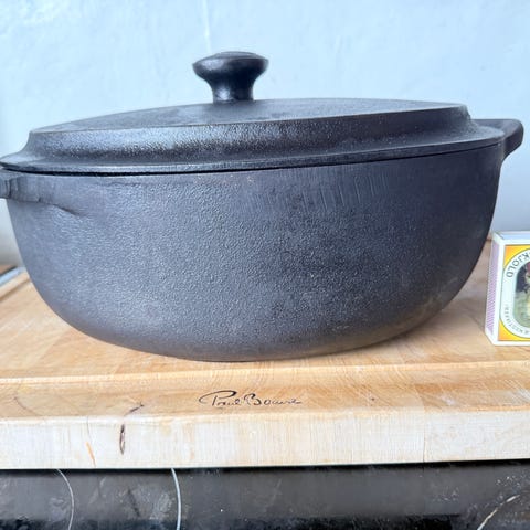 Gryden i sort støbejern er holdbar og særligt velegnet til gryderetter og til tilberedning af retter.