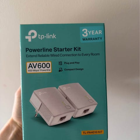TP-Link TL-PA7010P KIT powerline starterkit AV1000 gigabit. Sættet består af to powerline-adaptere med passthrough-stikdåse, som gør det muligt at udvide et kablet netværk via eksisterende elinstallation. Understøtter op til 1000 Mbps (AV1000) og har gigabit Ethernet-port på hver adapter til tilslutning af f.eks. computer, tv eller spillekonsol. Adapterne tilsluttes direkte i stikkontakten og kræver ingen ekstra kabler ud over netværkskabler til de enheder, der skal forbindes.